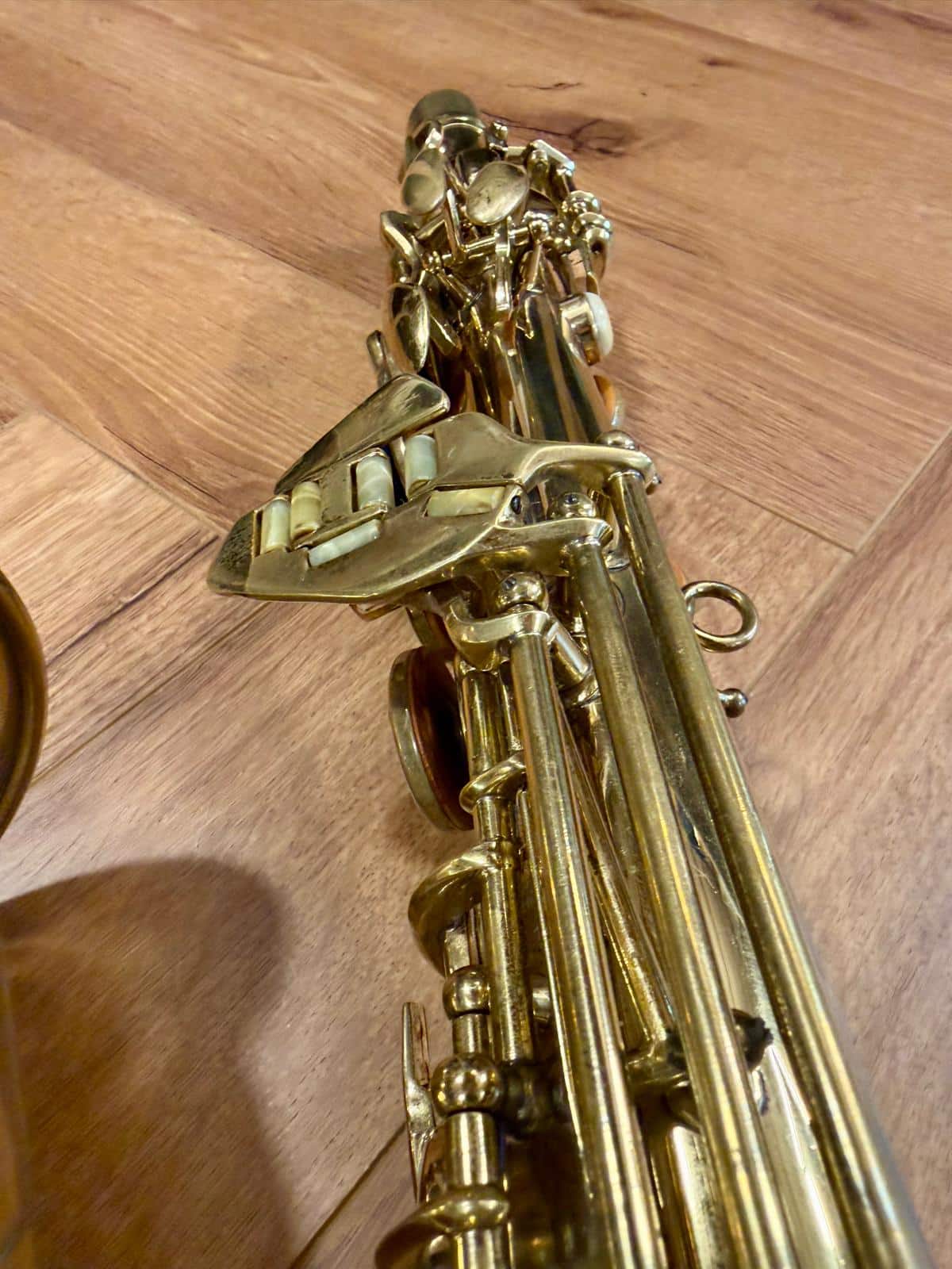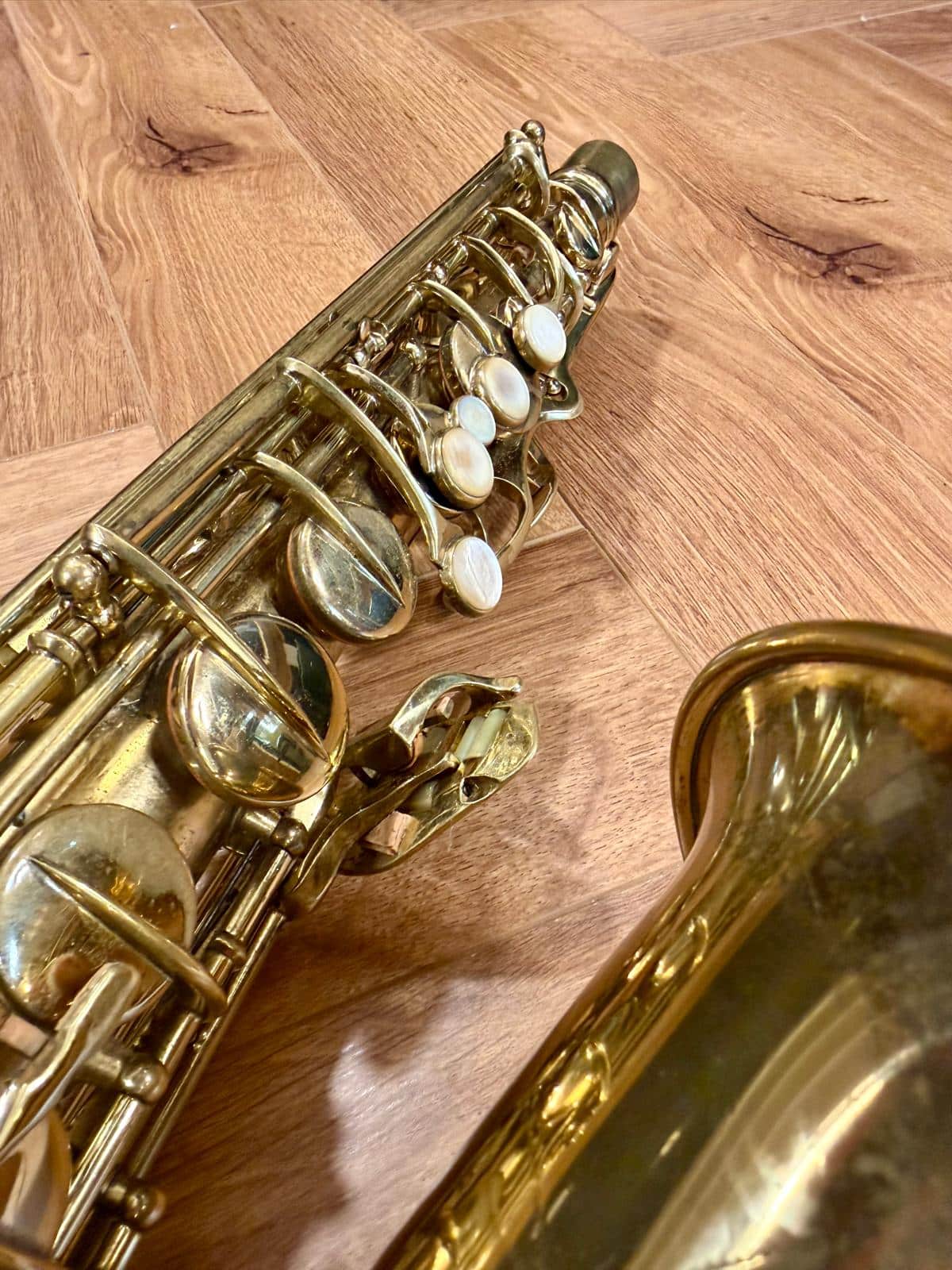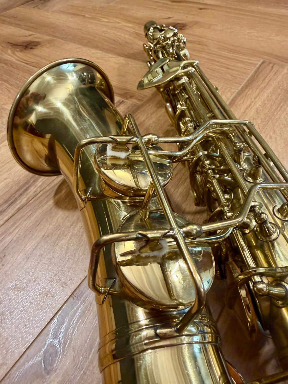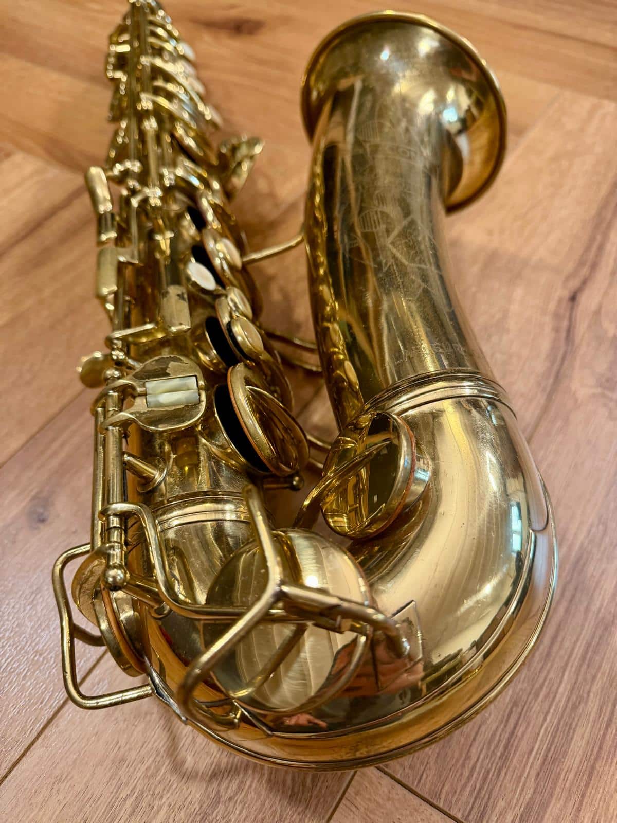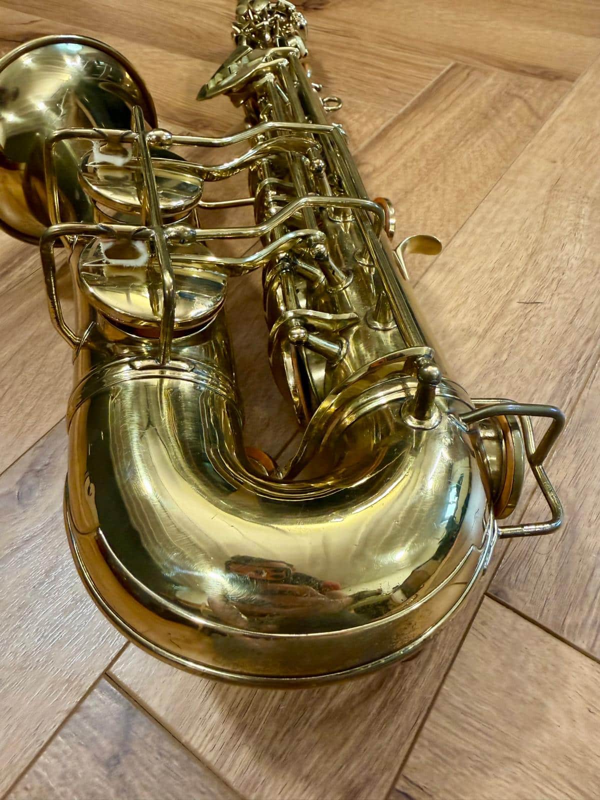 This one has the serial number 284XXX and was made in 1938. It is finished in a nicely done older re-lacquer and is in lovely condition for its age. It feels amazing under the fingers and makes a huge noise as you would expect from a horn of this era.