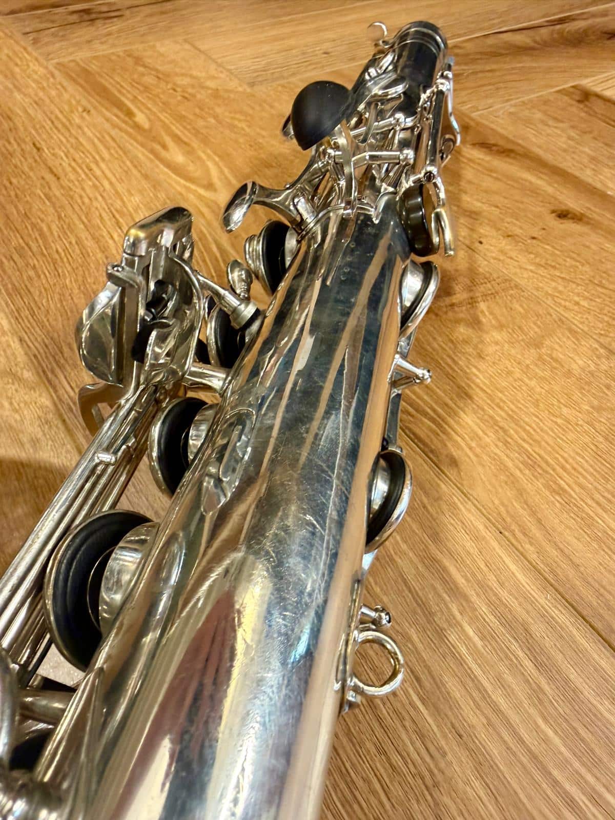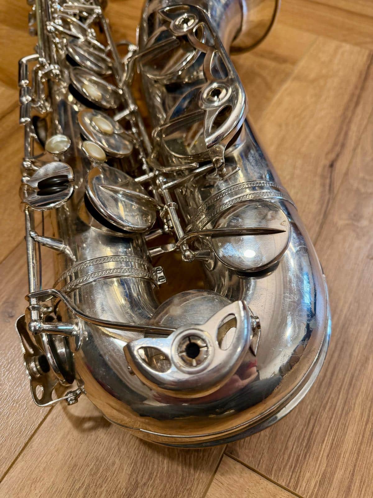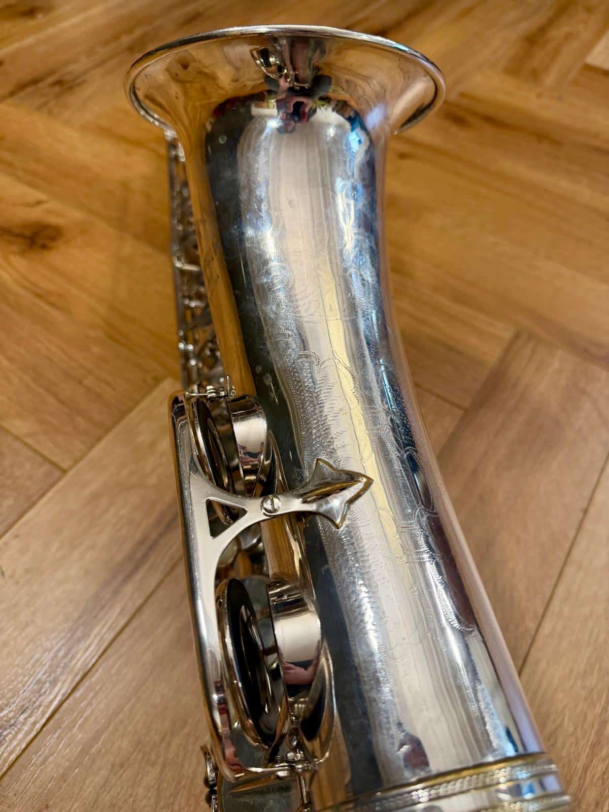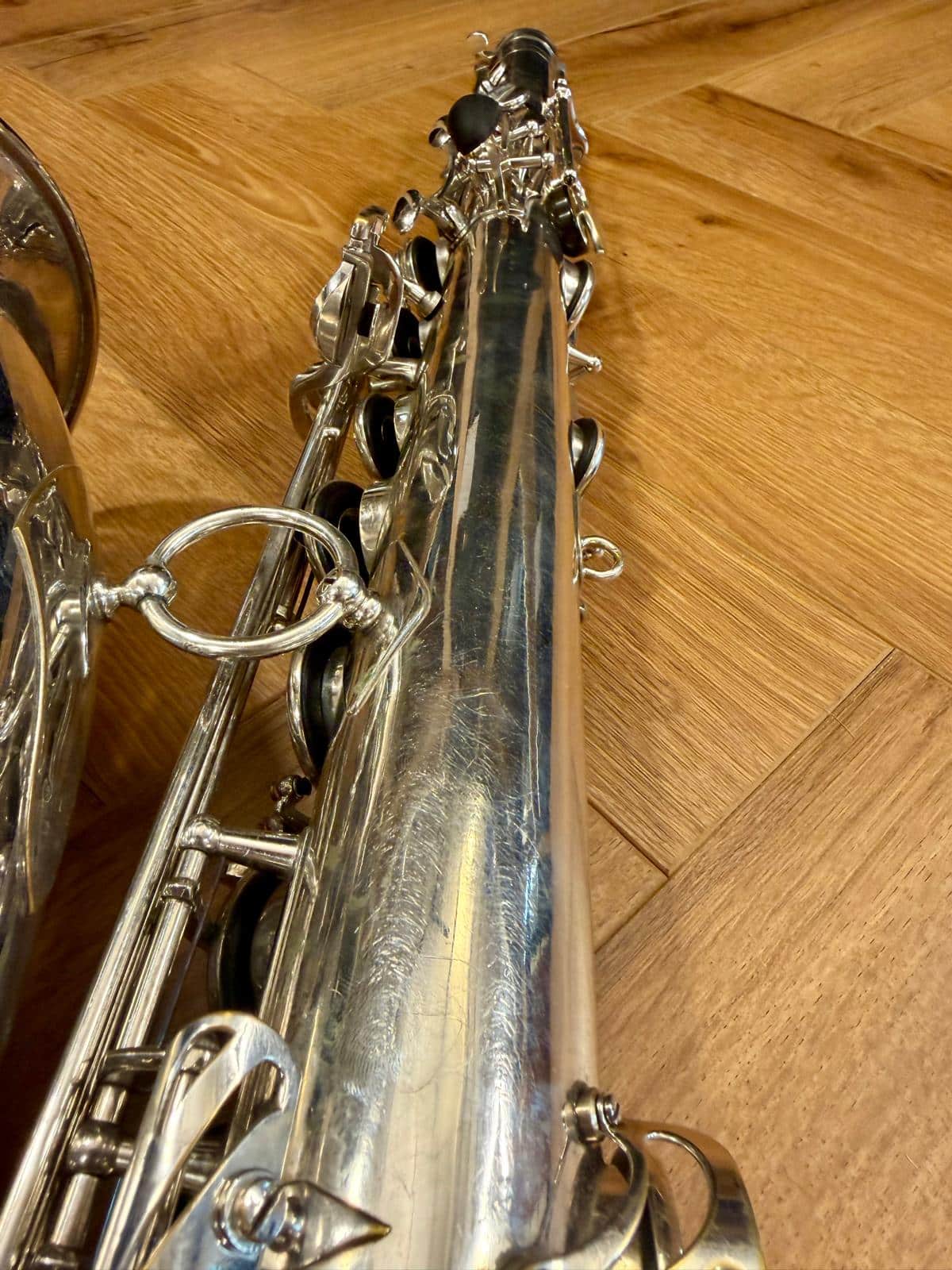 This Mark VI tenor has the serial number 62XXX which makes its year of production 1956. It is finished in silver plate and has been re-plated at some point in its life. The engraving is a little faded but still visible and it looks lovely. It benefits from a fresh roo pad overhaul and is in perfect playing condition. Truly a joy to play. If you’re looking for a killing playing early MK VI tenor without spending silly money then look no further!