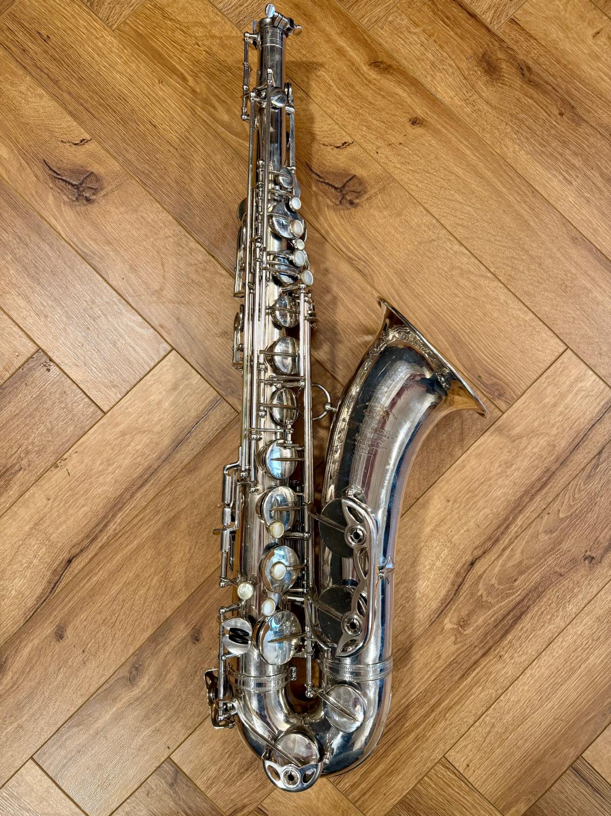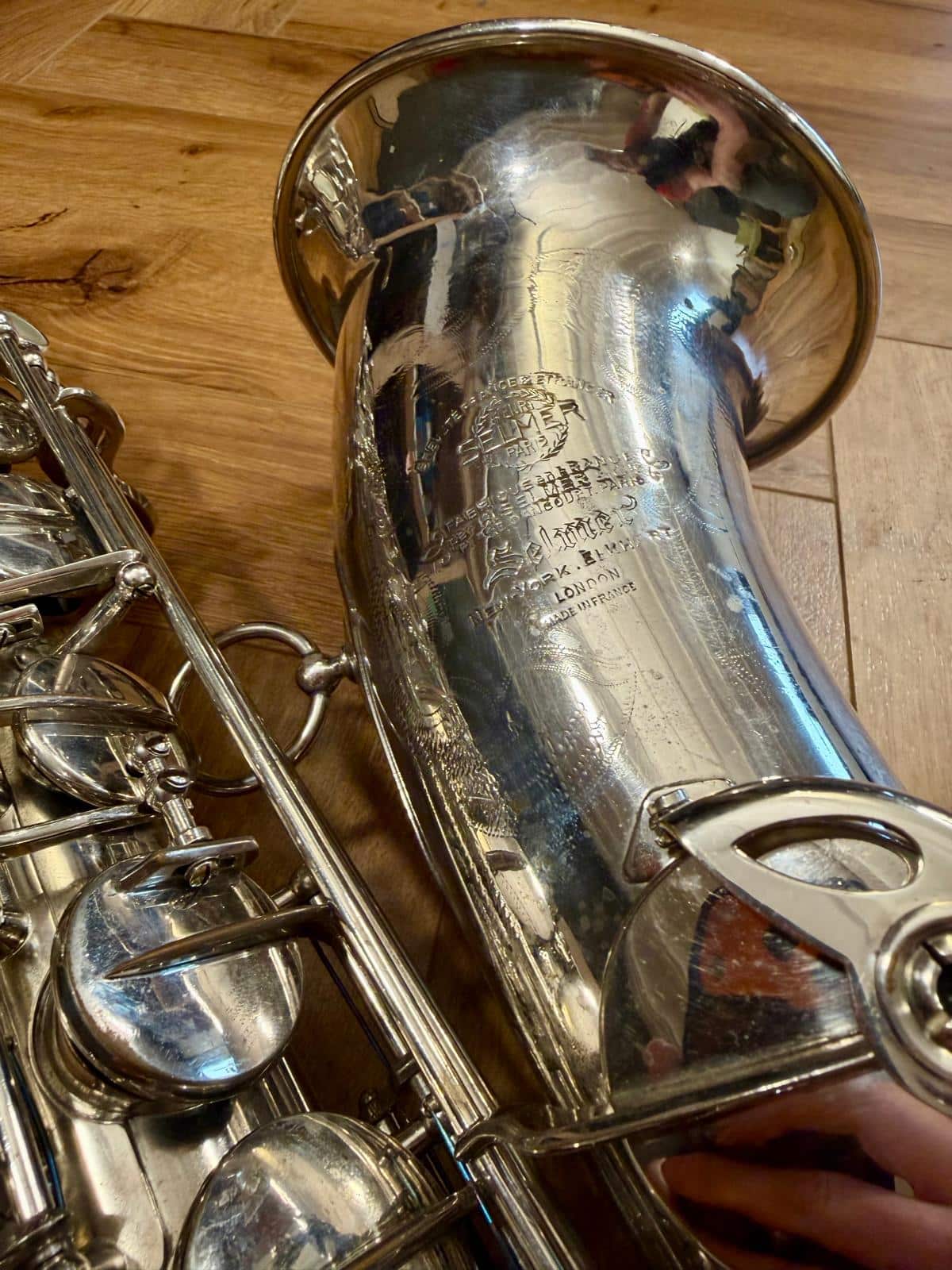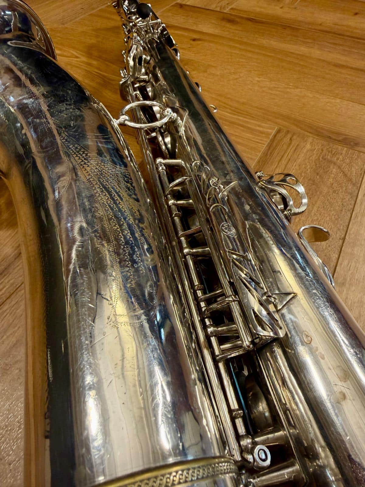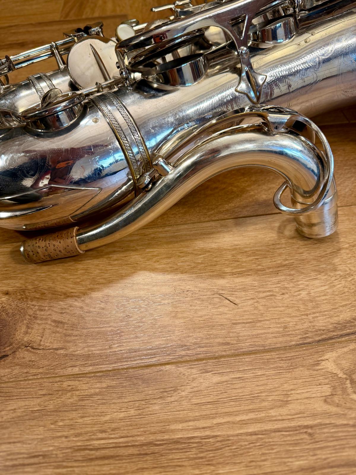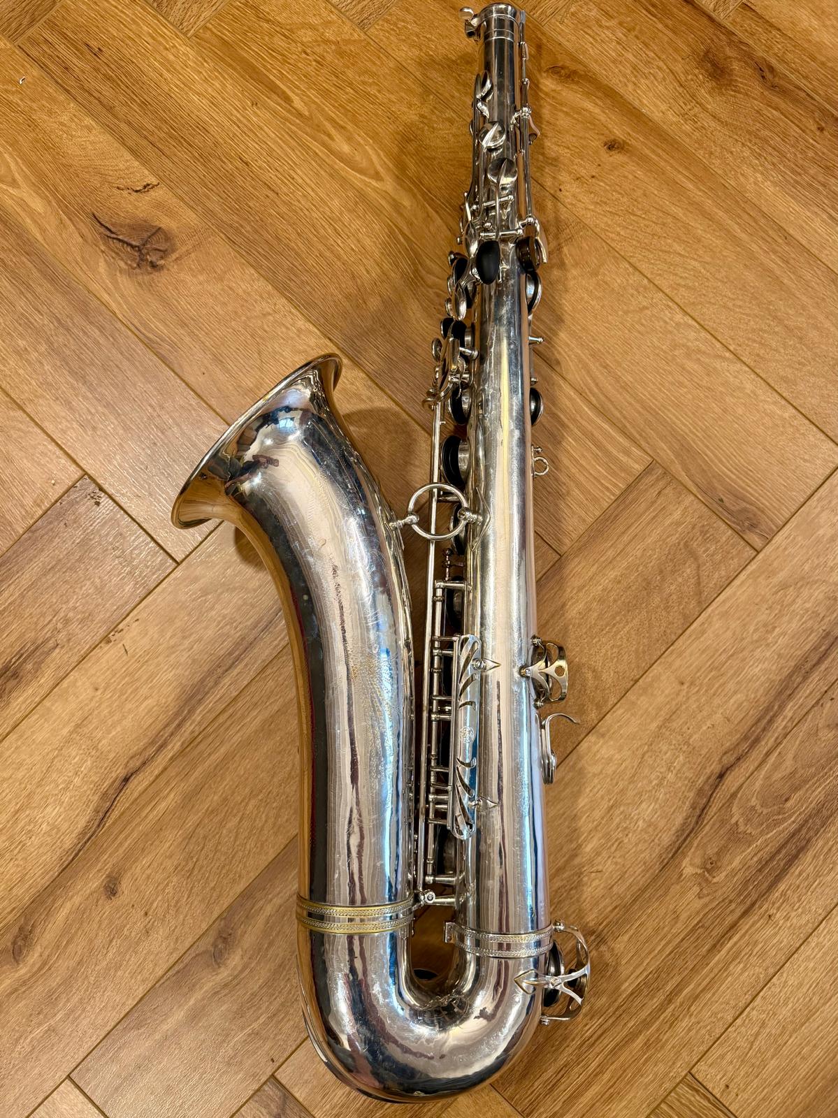 This Mark VI tenor has the serial number 62XXX which makes its year of production 1956. It is finished in silver plate and has been re-plated at some point in its life. The engraving is a little faded but still visible and it looks lovely. It benefits from a fresh roo pad overhaul and is in perfect playing condition. Truly a joy to play. If you’re looking for a killing playing early MK VI tenor without spending silly money then look no further!