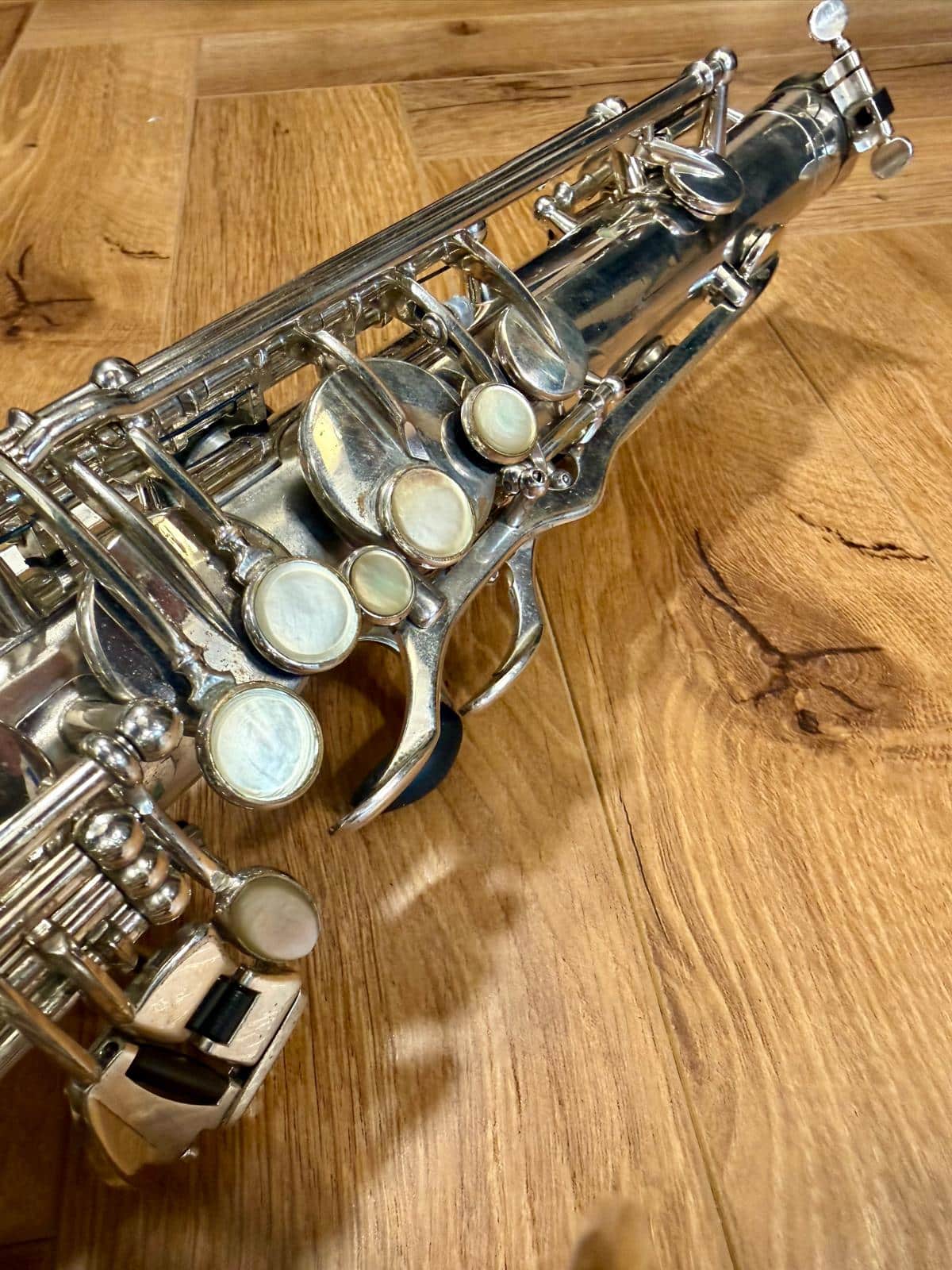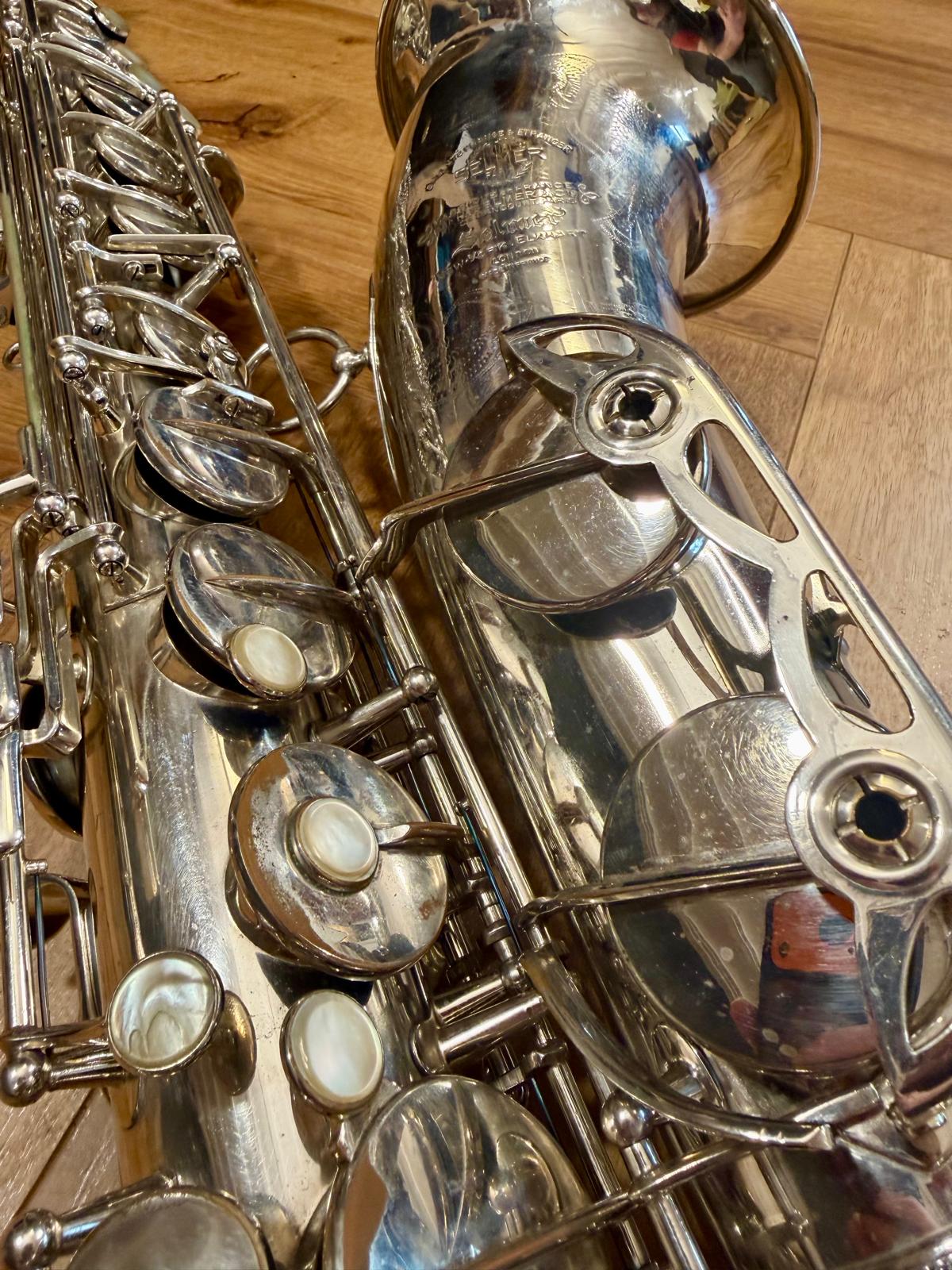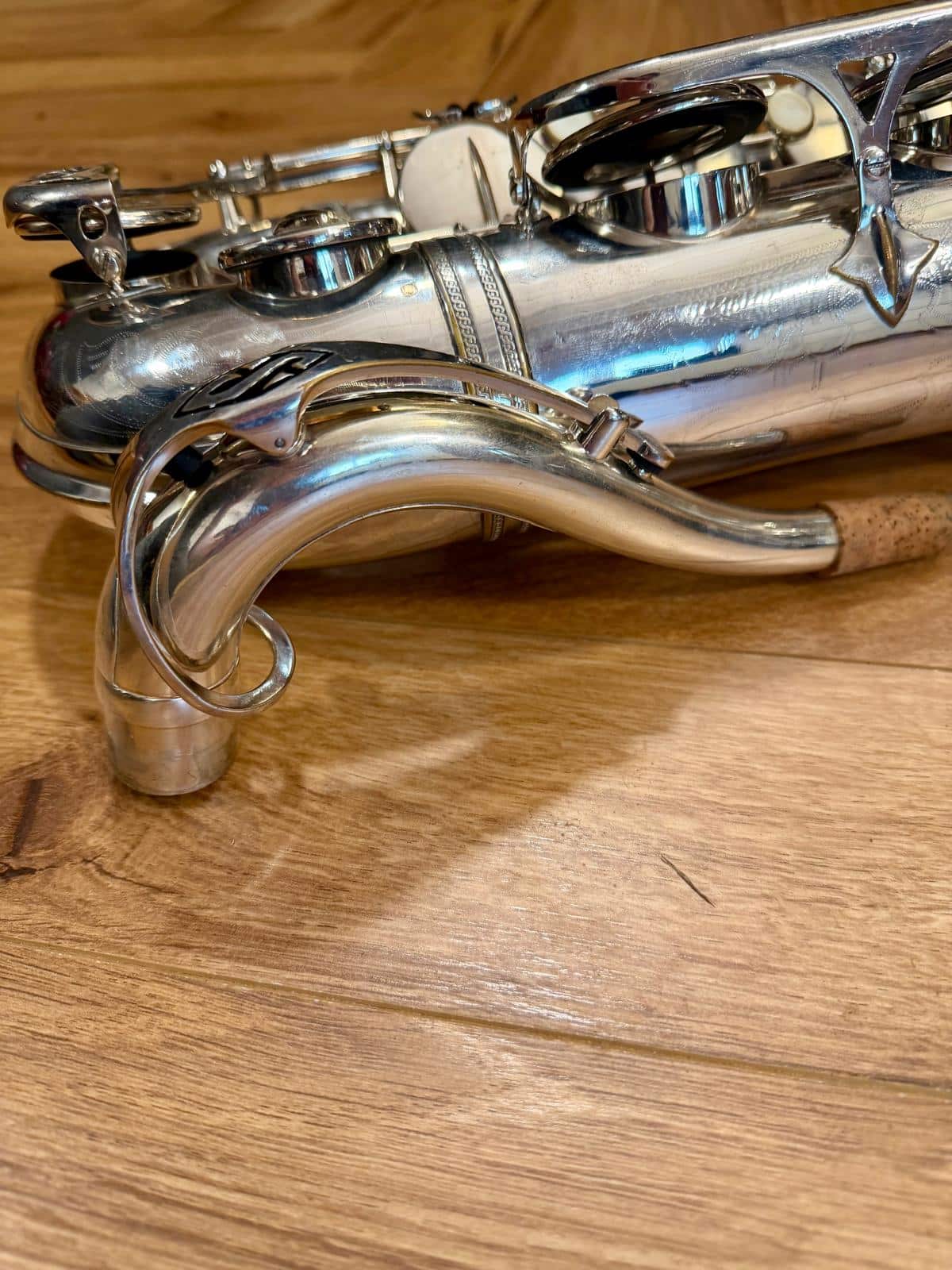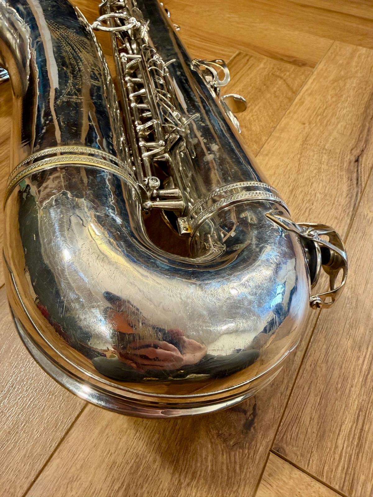 This Mark VI tenor has the serial number 62XXX which makes its year of production 1956. It is finished in silver plate and has been re-plated at some point in its life. The engraving is a little faded but still visible and it looks lovely. It benefits from a fresh roo pad overhaul and is in perfect playing condition. Truly a joy to play. If you’re looking for a killing playing early MK VI tenor without spending silly money then look no further!