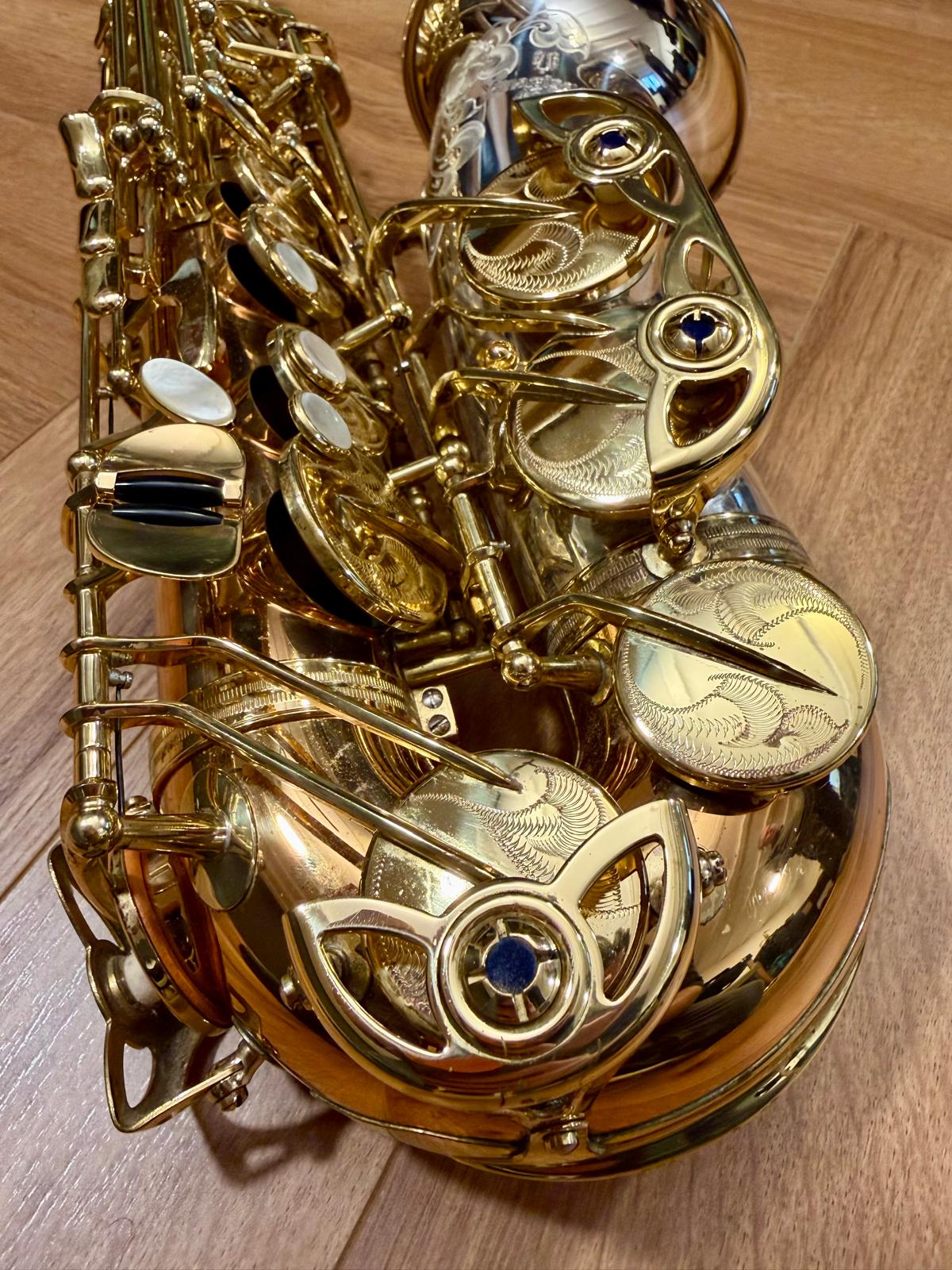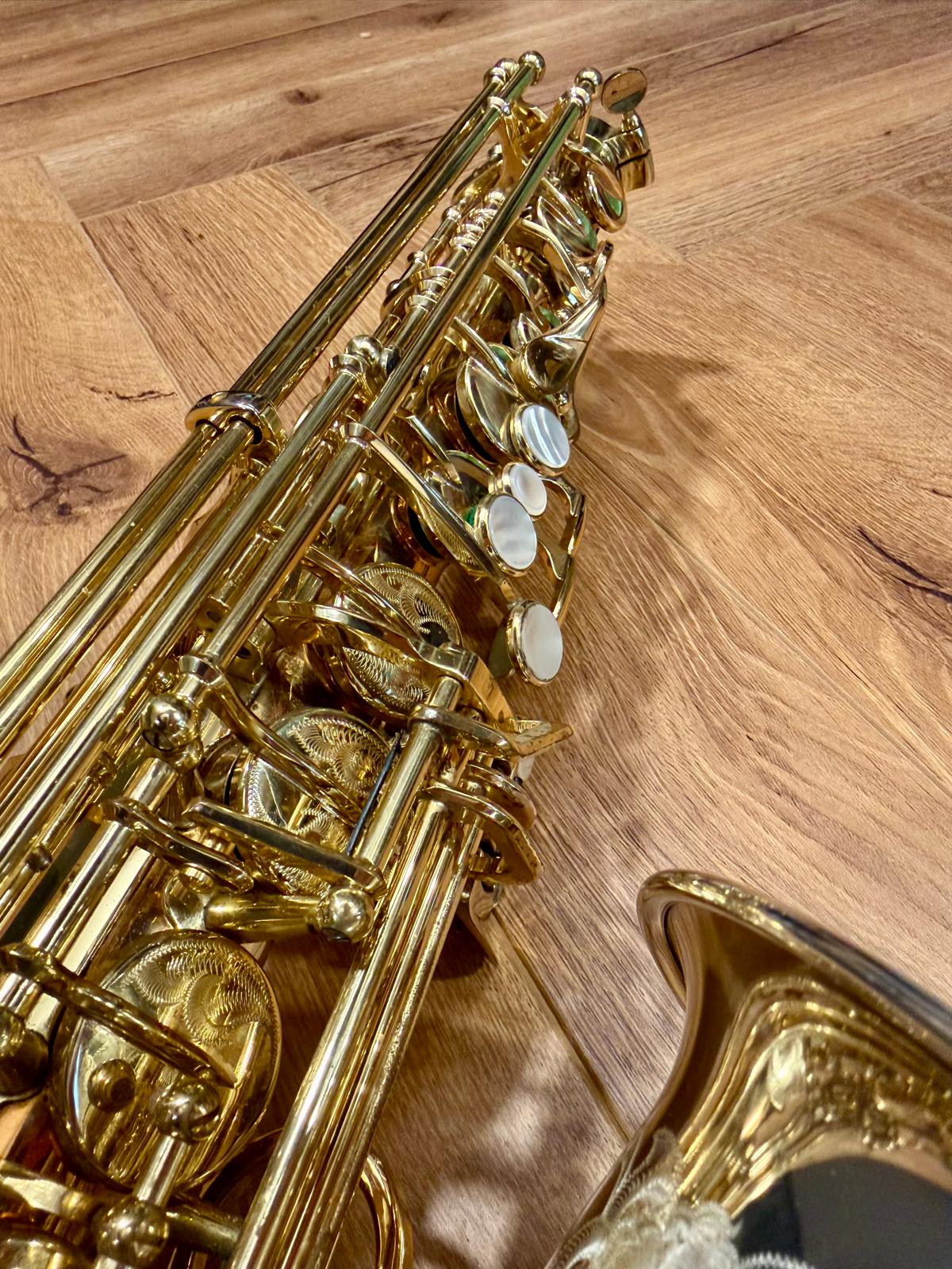 This one is in great used condition. There are a few marks to the lacquer but no major damage to speak of. It looks stunning! It benefits from a recent COA service and wants for nothing. This horn really blows! They are one of my favourite modern altos, they make a rich, warm, sound with just the right amount of brightness and are super resonant. Truly a joy to play.
